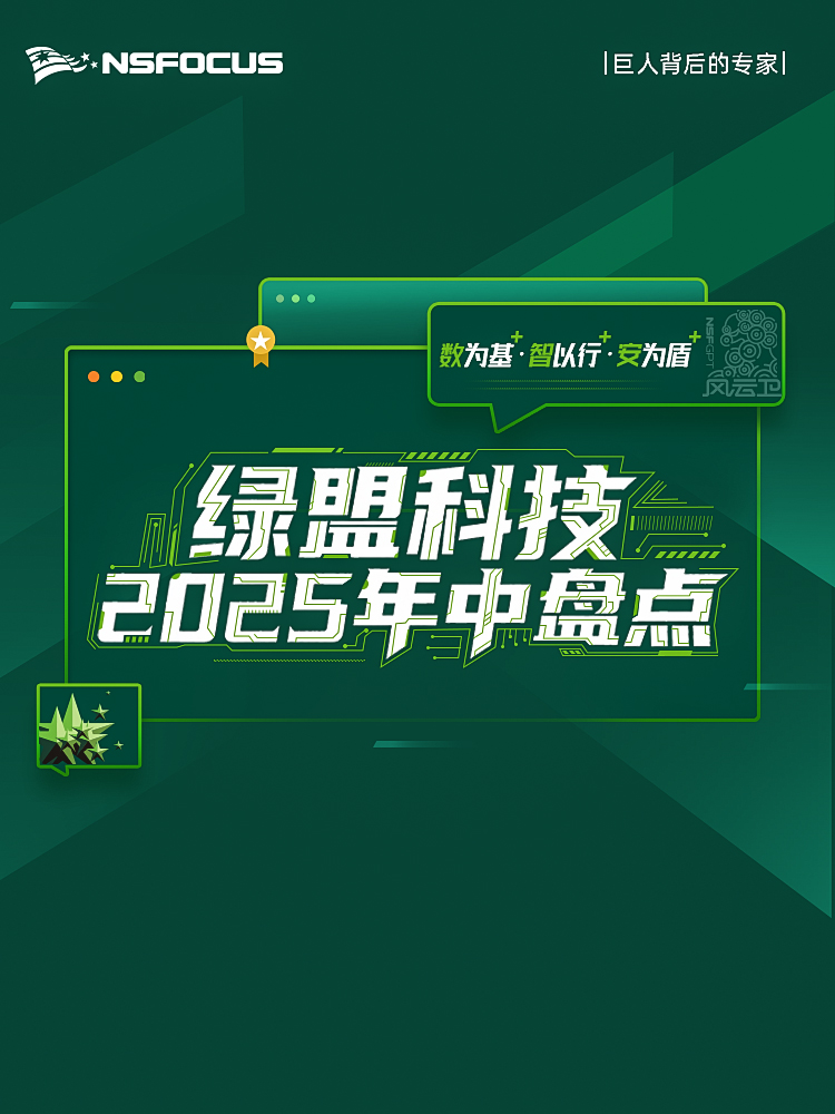 ? 2025 NSFOCUS 綠盟科技 www.nsfocus.com All Rights Reserved . 京公網(wǎng)安備 11010802021605號 京ICP備14004349號 京ICP證110355號
